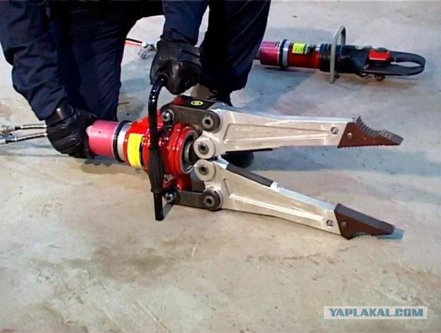 Лезвия ножниц перемещаются с регулируемой нажатием на рычаги скоростью, поэтому оператор может полностью контролировать процесс резки. По растущему усилию, передаваемому через гидравлику, можно понять, что для резания металла следует подобрать более мощный инструмент.