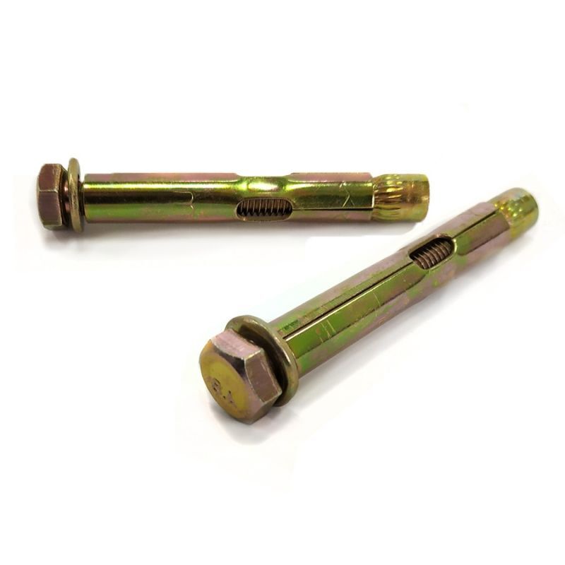 Действие поворота гайки на болте вытягивает болт вверх через втулку, в результате чего втулка расширяется до ⅛ дюйма, тем самым создавая необходимую фиксацию. Втулочные анкеры можно использовать в бетоне, кирпиче или камне.