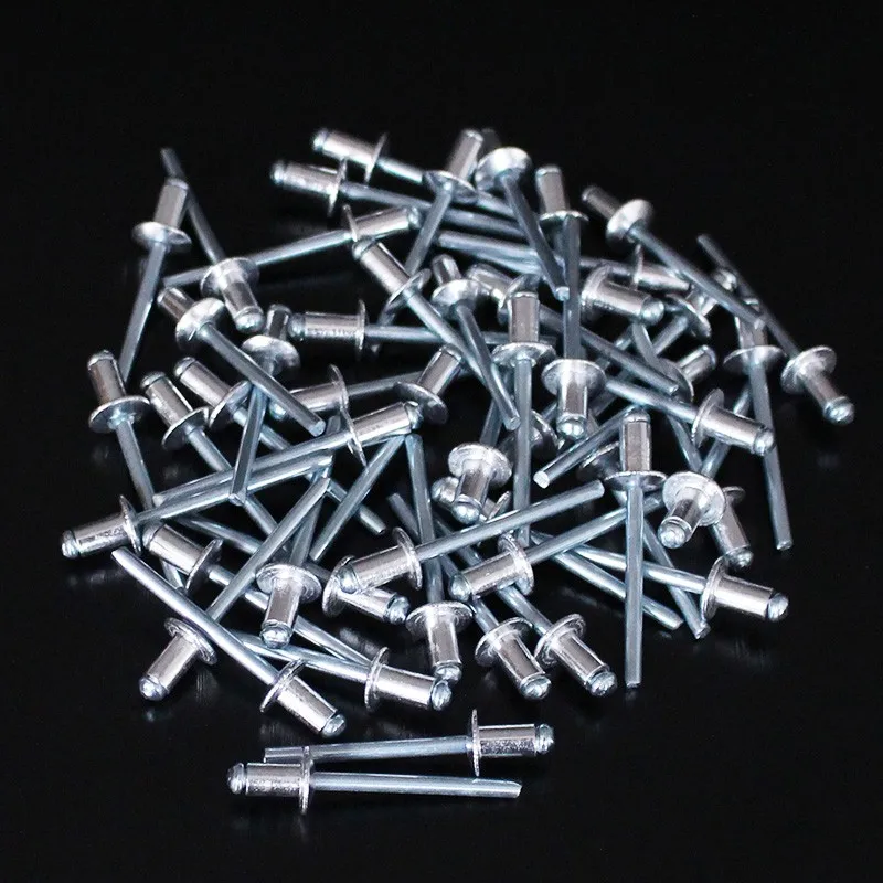 Заклепочные заклепки представляют собой тип вытяжных заклепок с небольшим выступающим стержнем из головки. После вставки приводных заклепок в отверстие оправку забивают молотком или другим инструментом, чтобы закрепить конец заклепки внутри отверстия.