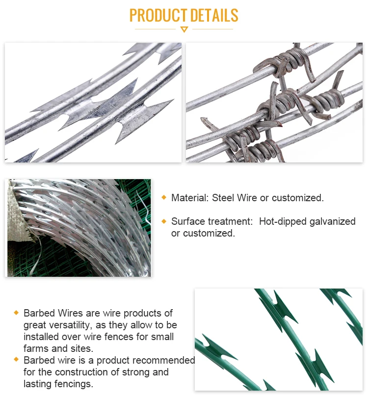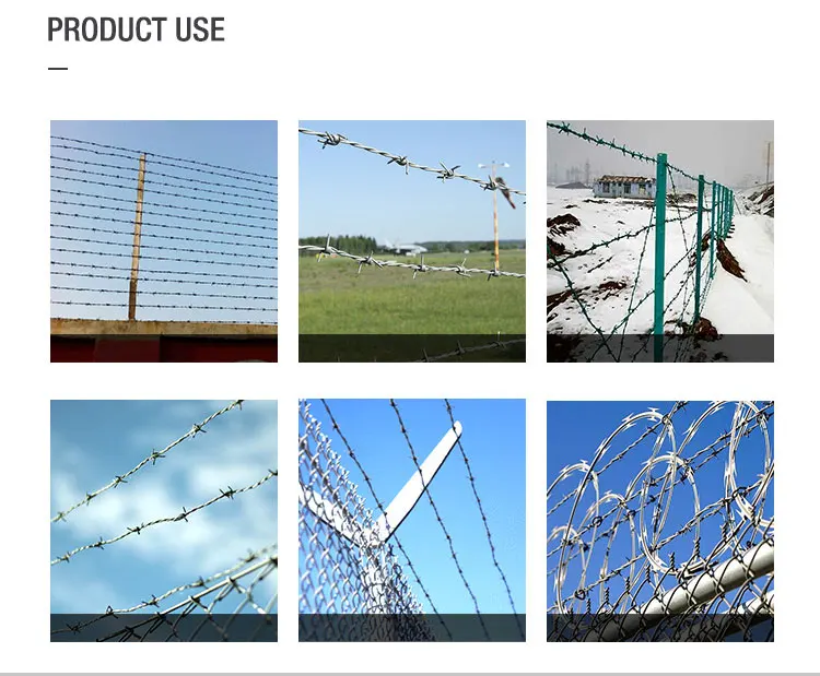 Сильные зазубрины с острыми концами могут сопротивляться изгибу. Он может пугать и защищать воров и злоумышленников. Они также могут безопасно содержать ваших животных и домашний скот на вашей ферме или ранчо. Колючка может быть одинарной или двойной проволокой для различных применений.