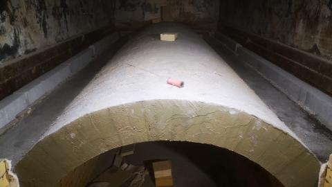 Π»Π°ΠΆΠ΄Π΅Π½ΠΈΠ΅ Π΅Ρ Π½ΠΈΠ·Π°. ΠΠ΅ΠΆΠ΄Ρ Π½ΠΈΠ·ΠΎΠΌ Π»Π΅ΡΠ°Π΄ΠΈ 1 ΠΈ ΠΏΠ½Π΅ΠΌ 8 ΡΡΠ½Π΄Π°ΠΌΠ΅Π½ΡΠ° Π·Π°ΠΊΠ»Π°Π΄ΡΠ²Π°ΡΡ ΡΡΠ³ΡΠ½Π½ΡΠ΅ ΠΏΠ»ΠΈΡΡ 7 ΡΠΎΠ»ΡΠΈΠ½ΠΎΠΉ 180Β ΠΌΠΌ; Π² ΠΏΠ»ΠΈΡΡ Π·Π°Π»ΠΈΡΡ ΡΡΠ°Π»ΡΠ½ΡΠ΅ ΡΡΡΠ±ΠΊΠΈ Π΄ΠΈΠ°ΠΌΠ΅ΡΡΠΎΠΌ 140Β ΠΌΠΌ, Π² ΠΊΠΎΡΠΎΡΡΠ΅ Π²Π΅Π½ΡΠΈΠ»ΡΡΠΎΡΠΎΠΌ ΠΏΠΎΠ΄Π°ΡΡ ΠΎΡ