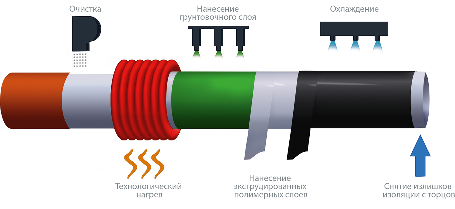 С целью улучшения адгезии между грунтом и стальной трубой ее поверхность зачищается при помощи специального абразивного оборудования.