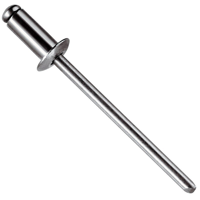 Выдвижная заклепка с открытым концом представляет собой трубчатую заклепку с оправкой, проходящей через центр трубчатого стержня. Как наиболее распространенный тип вытяжных заклепок, его также называют «заклепкой». Это недорогой вариант крепежа, доступный в широком диапазоне материалов. Что касается материала, это может быть алюминий, сталь, комбинация стали и алюминия и нержавеющая сталь.