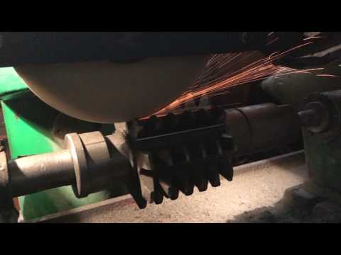 - Затем включаем станок и регулятором подачи подводим фрезу к заземляющему кругу До начала звука касания и заточки ленточных резцов со всех сторон. Металл заточенным резцом можно уменьшать и увеличивать с помощью регуляторов, установленных на станке.