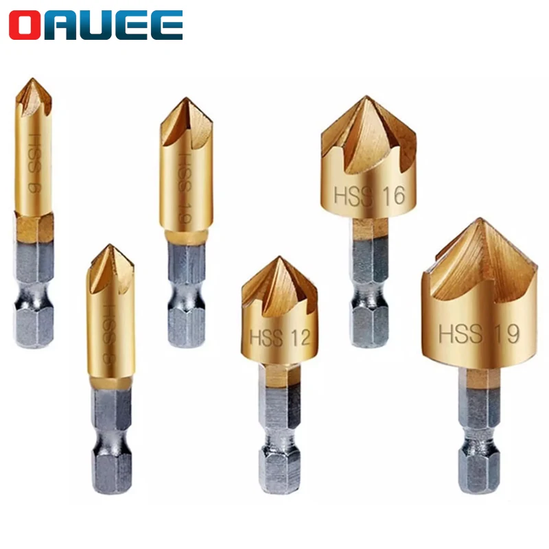 Само сверло имеет плоскую поверхность для надежного зацепления с установочным винтом — оно не будет соскальзывать, как со временем соскальзывают многие дешевые сверла с шестигранным хвостовиком. Я не уверен, из чего сделано кольцо или корпус зенковки, но сверла говорят, что они из быстрорежущей стали.