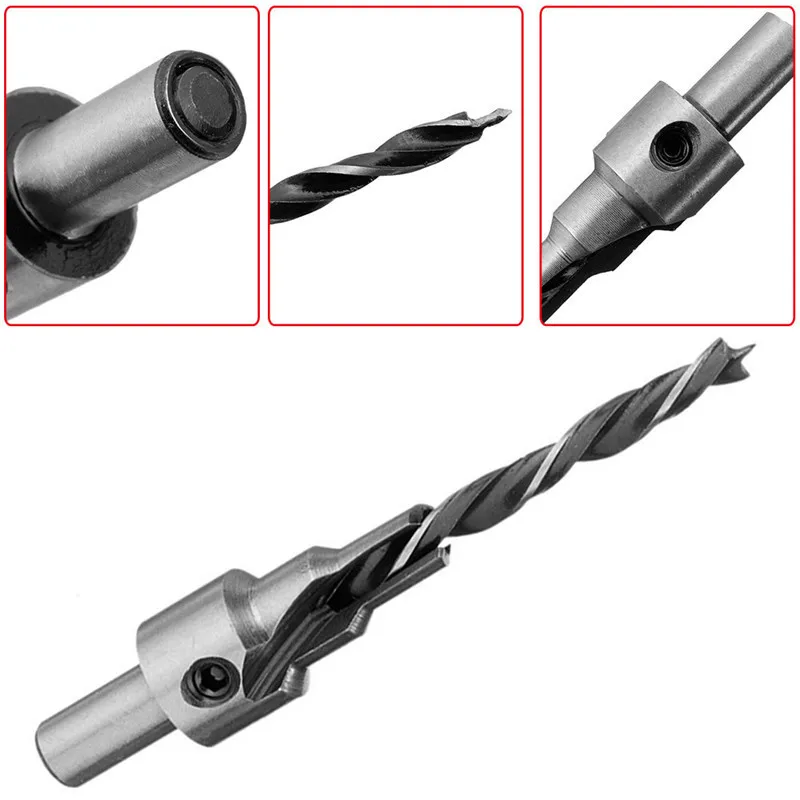 Все в одном: Эти зенкеры имеют отверстие посередине, в которое можно вставить сверло меньшего диаметра (пилотное) и часто ограничитель глубины.