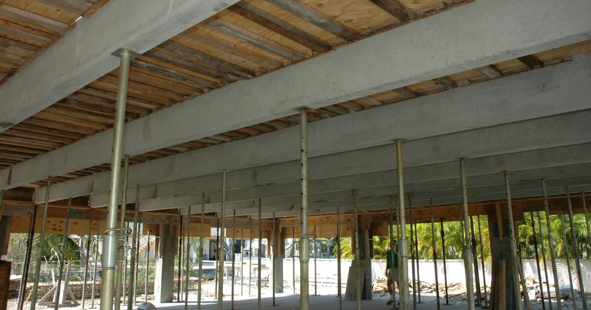 Наливные бетонные конструкции создаются в несколько этапов: подготовка стен, укладка несущих частей каркаса, установка опалубки или укладка профлиста, выполняющего эту роль, а последним этапом станет заливка бетона.