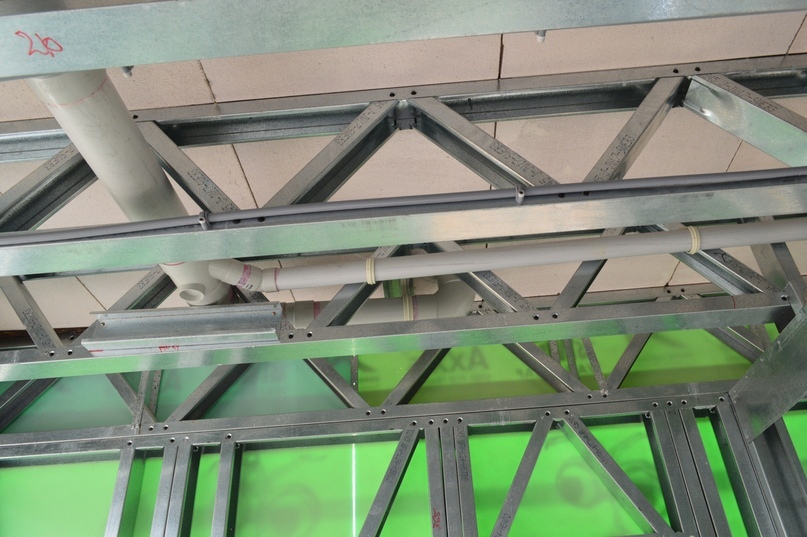 Обычные отверстия в стенке позволяют воздуховодам и другим коммуникациям проходить через балки.